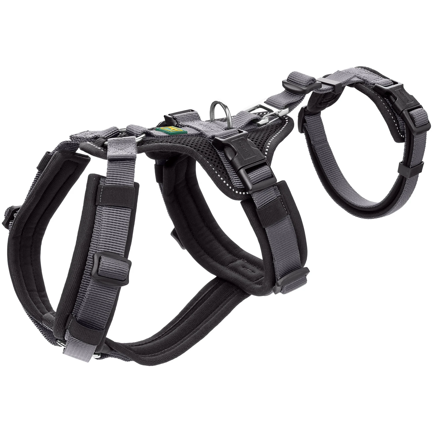 Het Hunter Veiligheidsharnas Maldon is ideaal voor uw schichtige viervoeter. Ondersteun uw hond in gevaarlijke situaties met behulp van het handvat op de rug. Het tuigje beschikt over meerdere verstelbare riemen, met in het bijzonder de extra buik- of heupgordel. Deze band zorgt ervoor dat uw viervoeter niet zomaar langs de achterkant uit het harnas kan ontsnappen. Deze extra riem is gemakkelijk te verwijderen wanneer deze niet meer nodig is. De lichtgewicht klikgespen maken dat het harnas eenvoudig en snel om te doen is. Het tuigje is verkrijgbaar in verschillende maten en leuke kleuren.