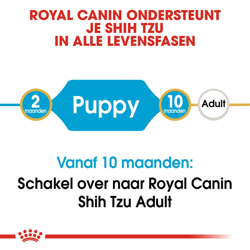 Royal Canin Shih Tzu Puppy is speciaal ontwikkeld om de natuurlijke weerstand van uw Shih Tzu pup te ondersteunen. In de eerste 10 maanden is het belangrijk dat zijn weerstand vergroot wordt, aangezien zijn immuunsysteem nog niet helemaal ontwikkeld is. De brokgrootte is speciaal ontwikkeld voor de kaakgrootte van uw Shih Tzu pup tot 10 maanden. De Shih Tzu Puppy van Royal Canin helpt ook om de kwaliteit van de ontlasting van uw pup te verbeteren. Dit komt door de zorgvuldig uitgekozen ingrediënten die de spijsvertering en de darmflora ondersteunen.