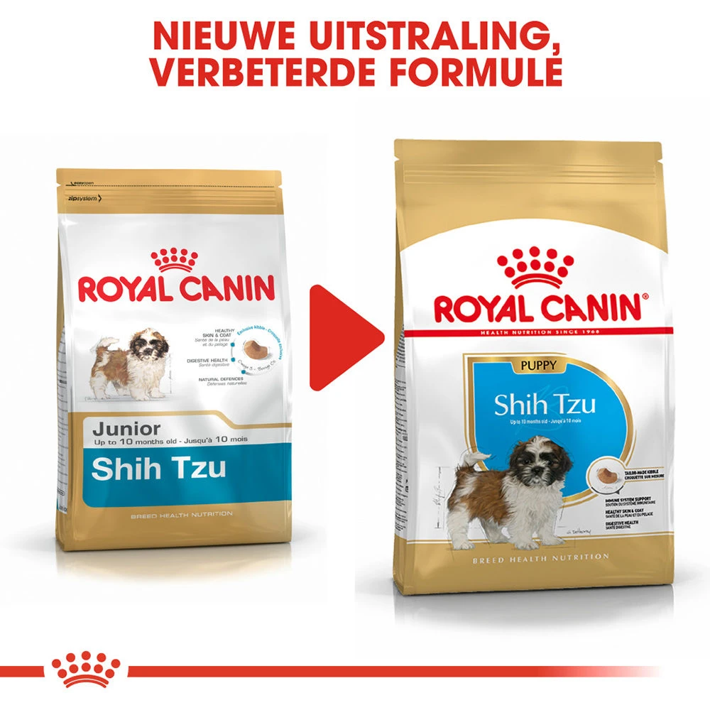 Royal Canin Shih Tzu Junior is van verpakking en samenstelling gewijzigd. Alle Junior producten zullen vanaf voortaan Puppy heten. Daarnaast is het recept ook verbeterd.